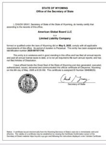 - State of Registration: State of Wyoming