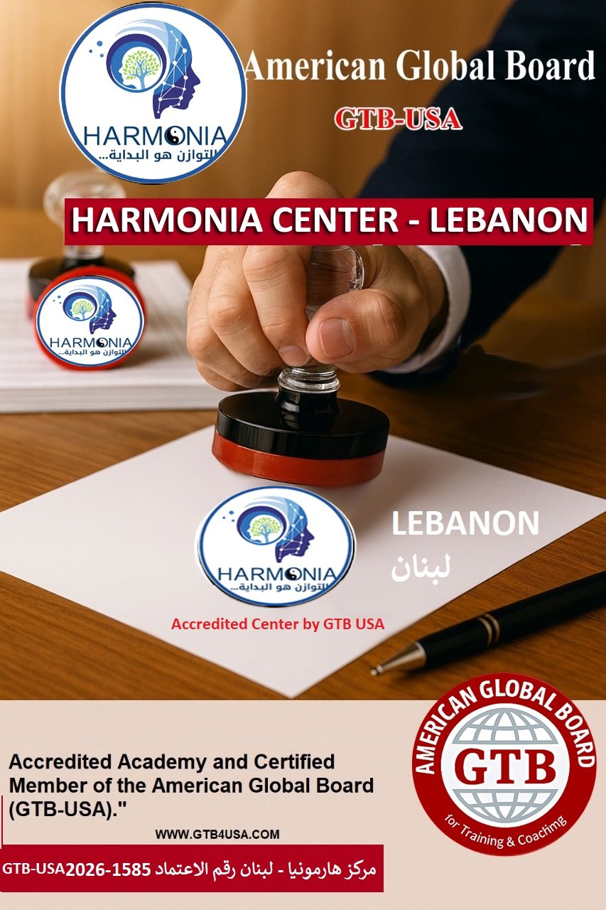 This is to certify that the Global Harmony Academy Lebanon has been officially accredited and granted membership by the American Global Board (GTB-USA). As an authorized and recognized member, Harmonia Training Center is entitled to conduct training courses, workshops, session procedures, and all related activities within this field under the accreditation of the American Global Board USA (GTB-USA).